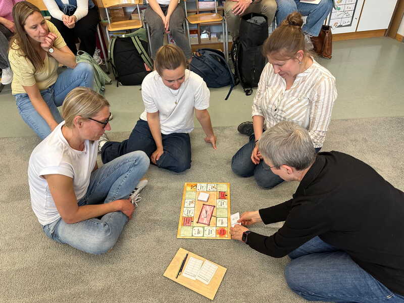 Bei der Fortbildung durften wir uns in die Kinder hineinversetzten und die Materialien sowie Spiele ausprobieren. Wie kann beispielsweise die schriftliche Division handlungsorientiert eingeführt werden? Welche Spiele helfen zur Vertiefung und zum besseren Verständnis?