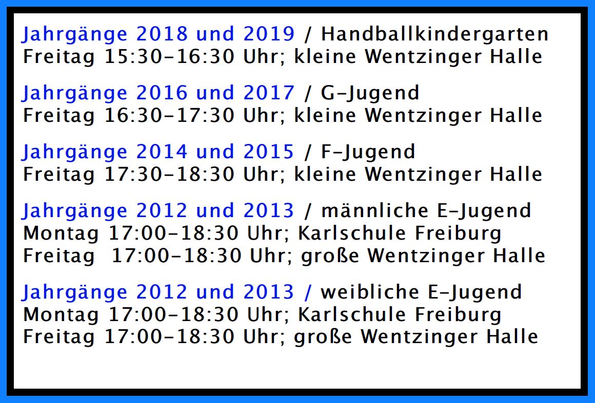 Trainingszeit: freitags von 15:30 – 17:00 Uhr in der Wentzinger Sporthalle.